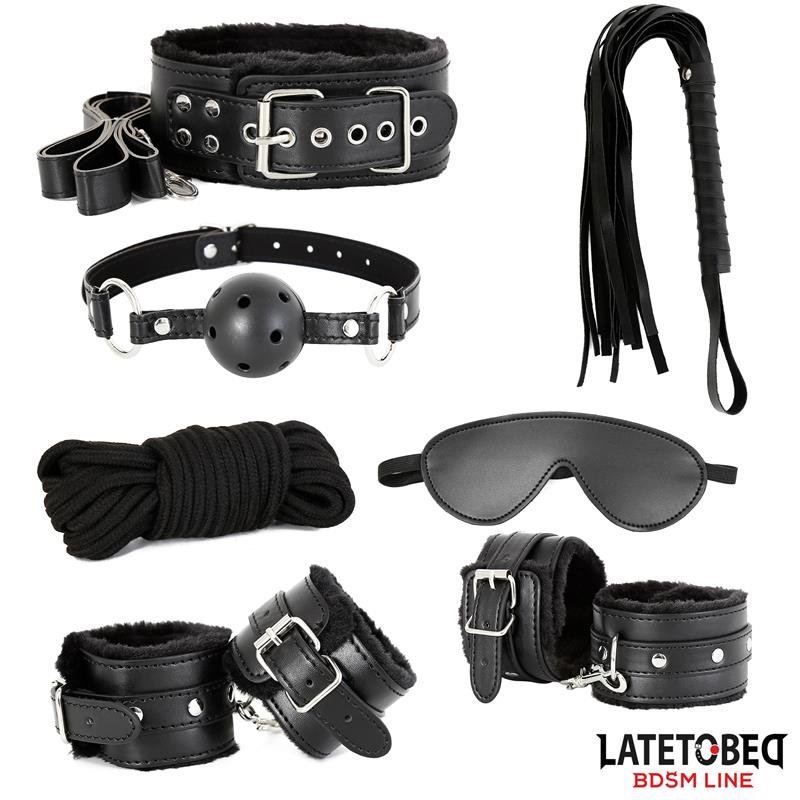 Turn your night into whatever you want with this 7-piece Bondage set. It has a whole range of BDSM products to have fun together.