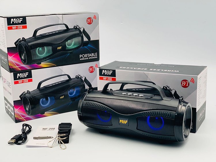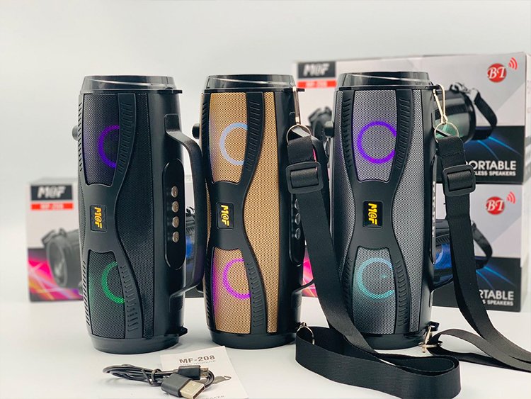 Ασύρματο ηχείο Bluetooth, επαναφορτιζόμενο, με εξαιρετικό ήχο και εντυπωσιακό φωτισμό LED RGB, σε πρακτικό σχεδιασμό με χειρολαβή και ρυθμιζόμενο λουράκι για μεταφορά παντού.