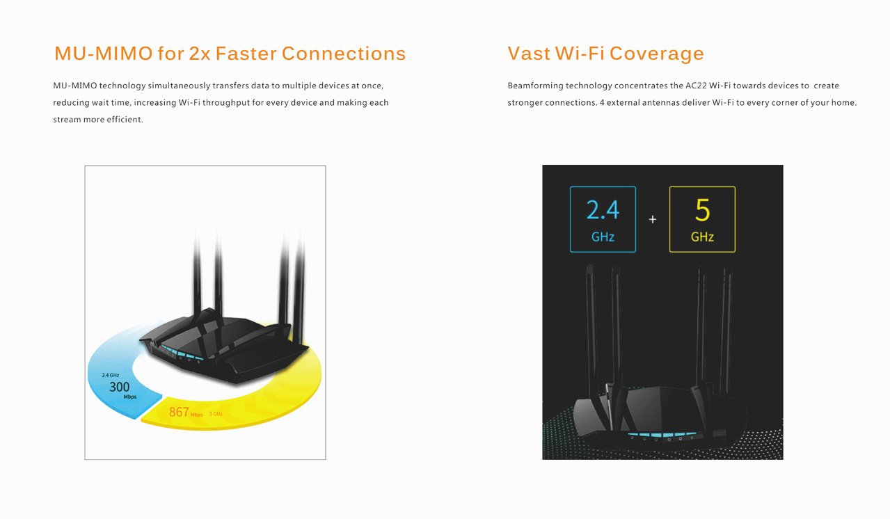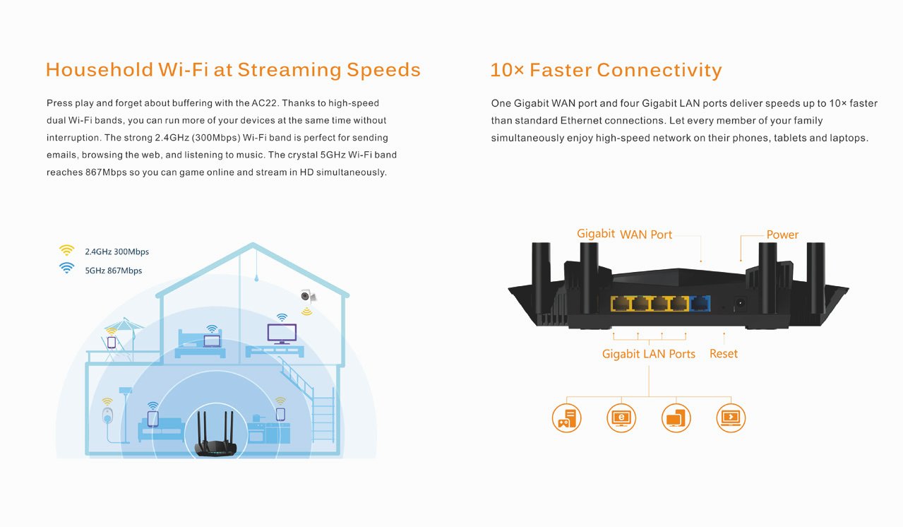 Ρυθμός σήματος: 5 GHz: Έως 867 Mbps, 2,4 GHz: Έως 300 Mbps
