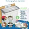 Επιπλέον, χρησιμοποιήστε το σε εσωτερικούς και εξωτερικούς χώρους. όπου και όποτε χρειάζεται να συλλέγετε τα απορρίμματα με καθαρό, αποτελεσματικό και “ανοιχτό” τρόπο, χρησιμοποιήστε αυτόν τον κάτοχο σάκου απορριμμάτων