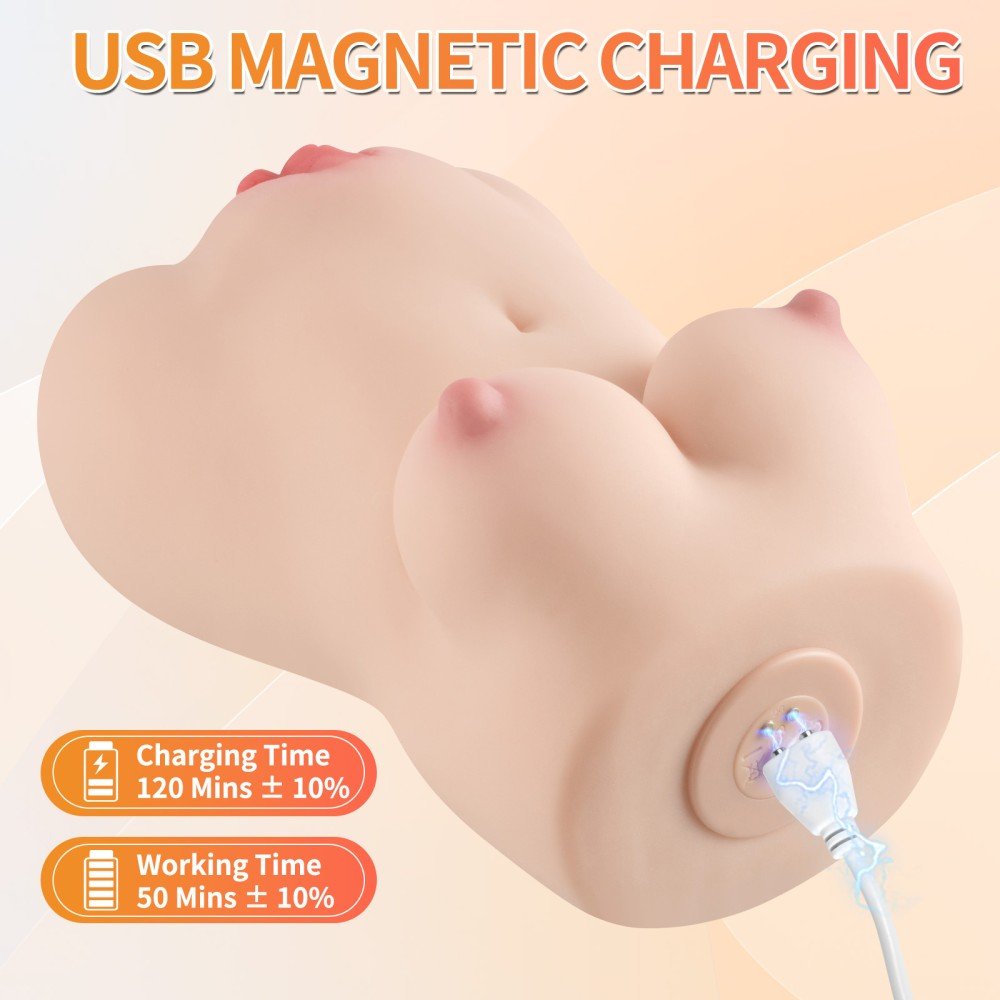 men, erotic toy with breast and vagina-shaped body opening, 3 speeds and 7