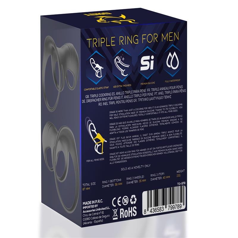 Driade is a triple ring for men, perfect to triple pleasure and increase sensations.