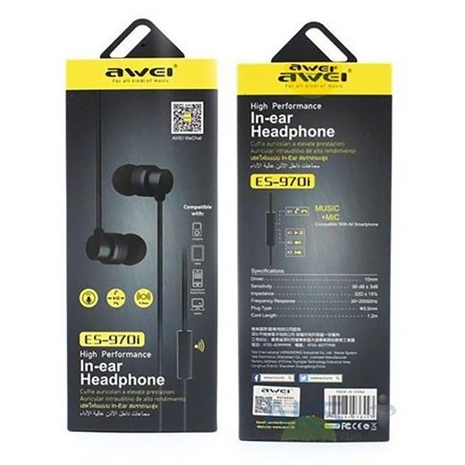 Ενσύρματα ακουστικά ES-970i της Awei με εξαιρετική ποιότητα ήχου και δυνατότητα να απαντάτε στις κλήσεις σας ή να αλλάζετε την μουσική σας με το πάτημα ενός κουμπιού.