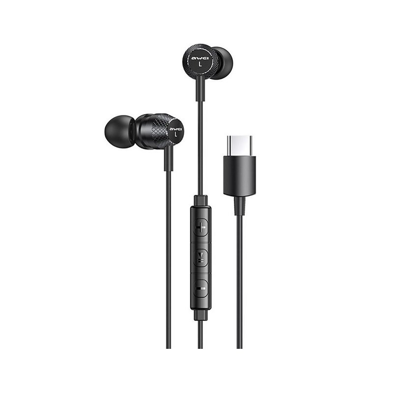 Ενσύρματα ακουστικά AWEI με σύνδεση Type-C, με υψηλής ποιότητας ήχο surround και εργονομικό σχεδιασμό για άνετη εφαρμογή και άριστη ηχομόνωση.