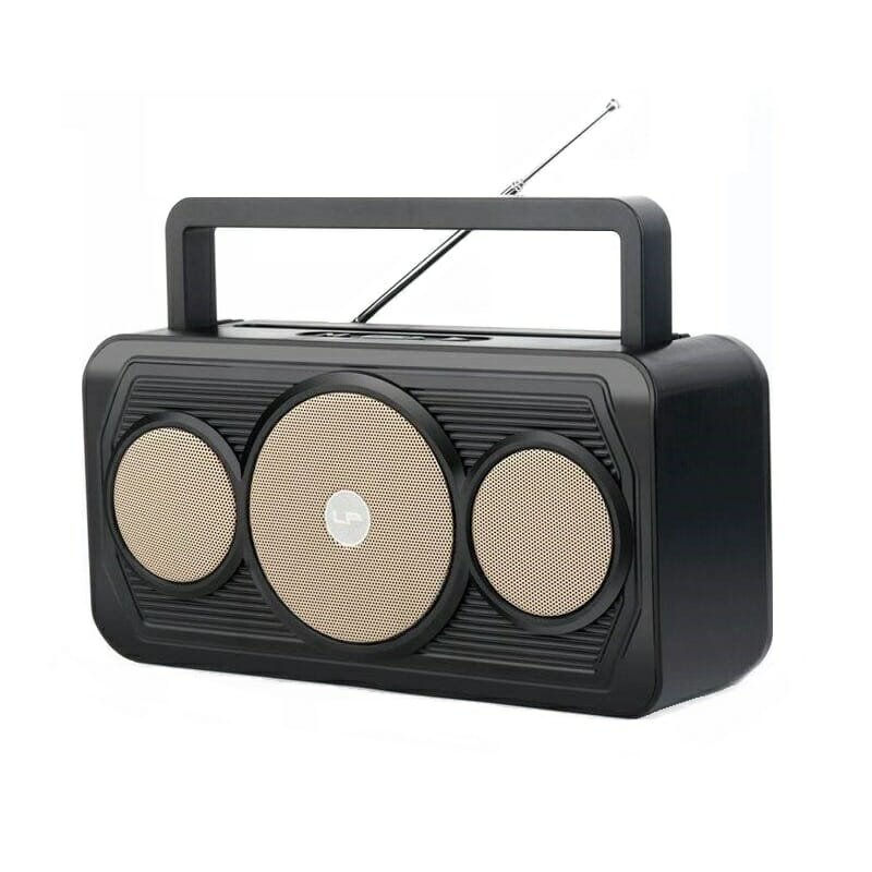 Φορητό ραδιόφωνο και ασύρματο ηχείο Bluetooth, με καθαρό στερεοφωνικό ήχο με εφέ μπάσου και εργονομική σχεδίαση, με πτυσσόμενη χειρολαβή για μεταφορά παντού.