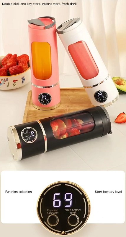 Φορητό, επαναφορτιζόμενο παγούρι-μπλέντερ χειρός, σε πρακτικό σχεδιασμό και μέγεθος για να έχετε πάντα και παντού φρέσκο smoothie των αγαπημένων σας φρούτων και λαχανικών, με το πάτημα ενός κουμπιού.