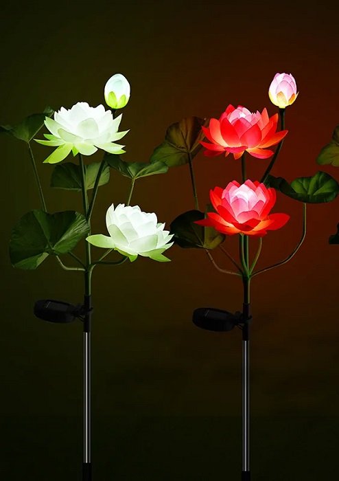 Φωτιζόμενα διακοσμητικά λουλούδια LED με ηλιακό πάνελ φόρτισης και ενσωματωμένη επαναφορτιζόμενη μπαταρία, ιδανικά διακοσμητικά για χρήση σε σημεία που δεν έχουν εύκολη πρόσβαση σε ηλεκτρικό ρεύμα, καθώς τοποθετούνται και χρησιμοποιούνται εξολοκλήρου ασύρματα.