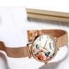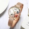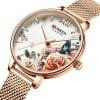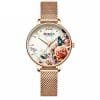 - Γυναικείο αδιάβροχο ρολόι Curren με ροζ-χρυσό μπρασελέ από ανοξείδωτο ατσάλι, μεταλλική ροζ-χρυσή κάσα και λευκό καντράν διακοσμημένο με υπέροχη ζωγραφιά λουλουδιών.