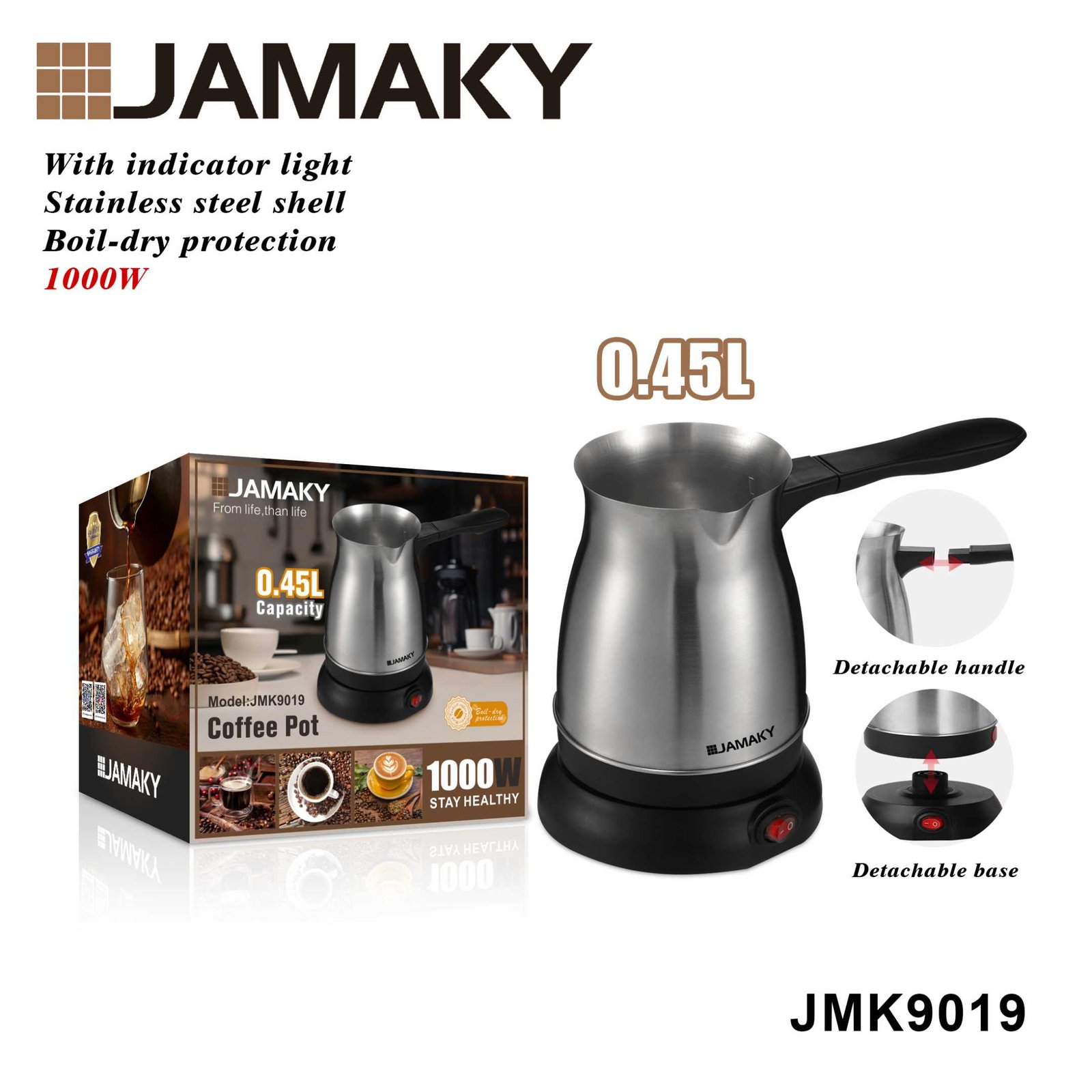 Ηλεκτρικό μπρίκι inox της Jamaky, για ελληνικό καφέ και ζεστό νερό, εύχρηστο και πρακτικό, για να έχετε άμεσα έτοιμο τον αγαπημένο σας ελληνικό καφέ ή να βράσετε νερό σε λίγα λεπτά.