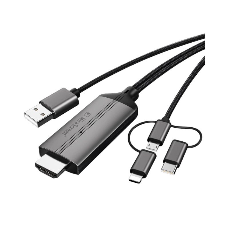 Καλώδιο USB σε HDTV – Mirascreen , 3 σε 1, μήκους 2m, για τη μεταφορά εικόνας από κινητά, στην τηλεόρασή σας ή σε κάποια άλλη οθόνη.