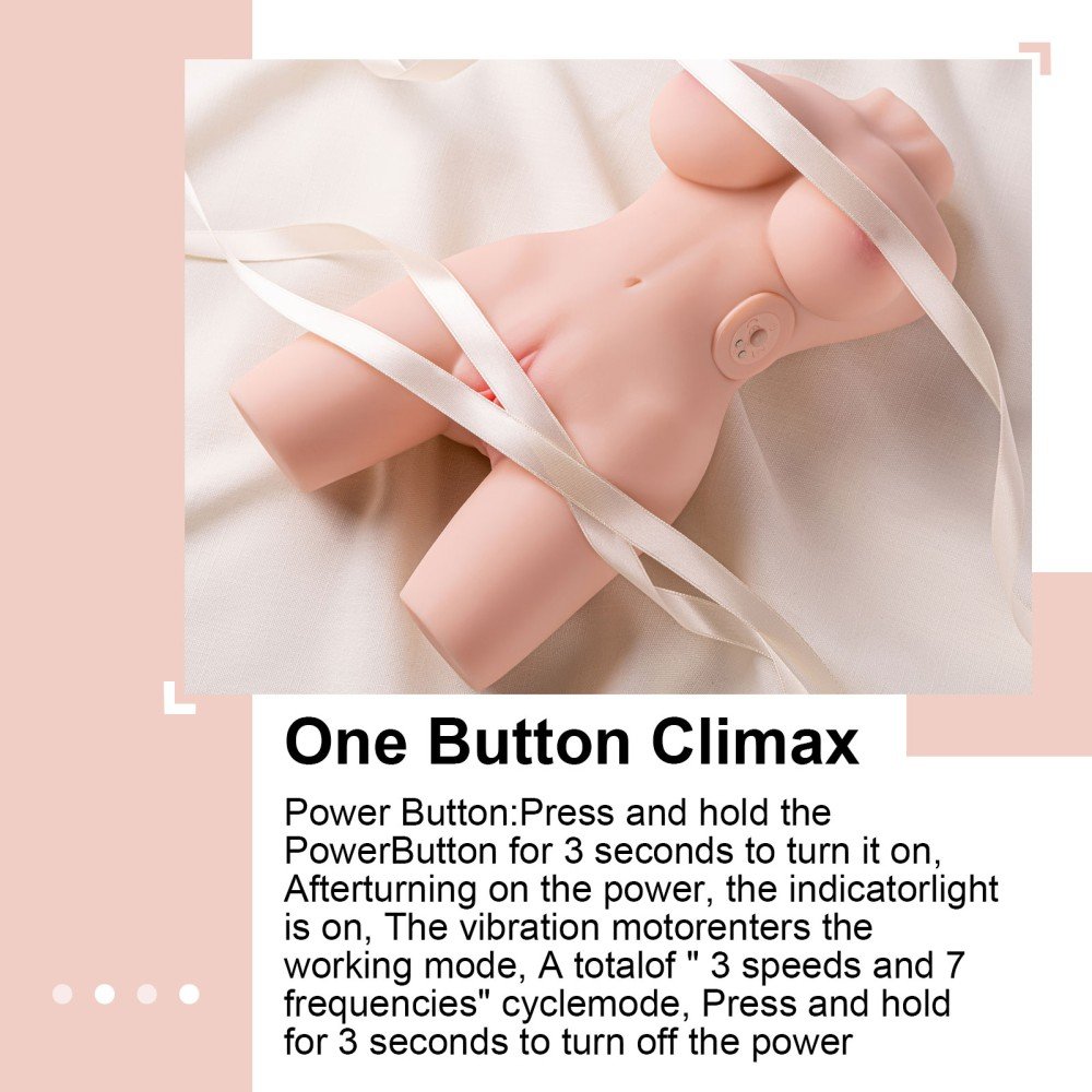 High-quality, soft, leather-like material, recommended for men, erotic toy with breast and vagina-shaped body opening, 3 speeds and 7 vibration functions. Using this toy greatly improves self-control during intercourse, significantly increasing its duration. The product weighs 157 kg. Its height is 27,5 cm, breast size is 38 cm, hip size is 37 cm, waist size is 24cm, and width is 14 cm.
