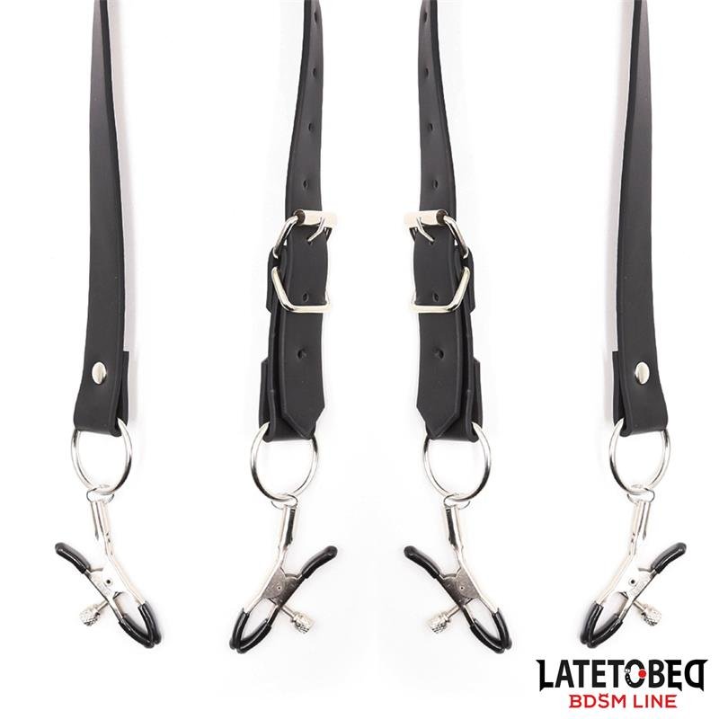Have an extra spicy night with these leg bondage straps with clitoris clamps. These clips are placed on straps so you can put them on your thighs and enjoy hands-free. They are fully adjustable, both the straps and the clips.