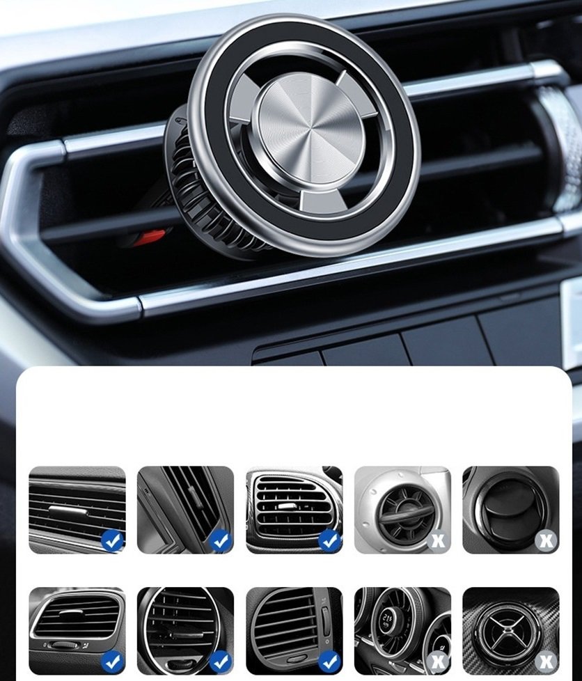 Μαγνητική βάση στήριξης smartphone αυτοκινήτου με εύκολη τοποθέτηση στους αεραγωγούς κλιματισμού με ειδικό κλιπ σταθεροποίησης.