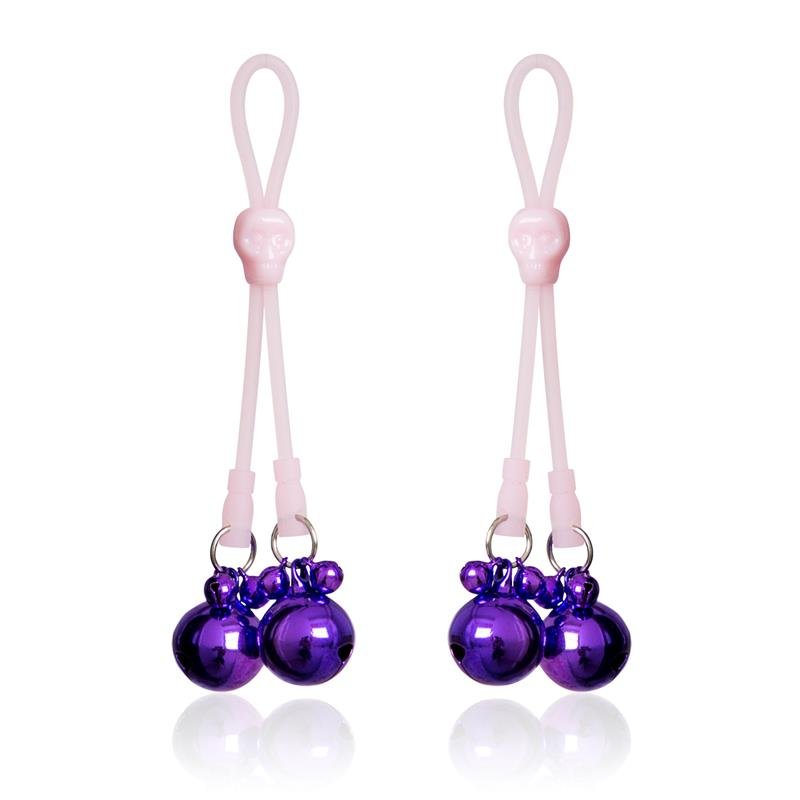 Nipple Clamps Skulls and Ring Bells Silicone and Metal Pink/Purple