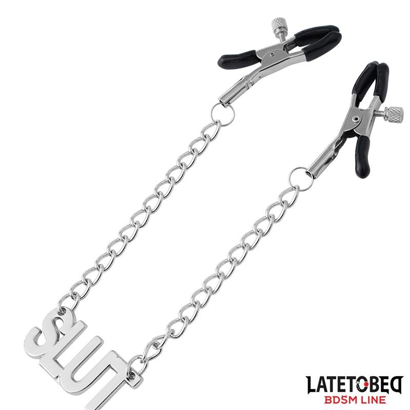 Classic nipple clamps with chain, they are fully adjustable, with protective covers to prevent damage.
