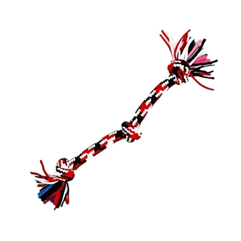 Παιχνίδι σκύλου σχοινί με κόμπους, από ανθεκτικό, μη τοξικό πολυεστέρα, ιδανικό για παιχνίδια τραβήγματος/αντίστασης ενώ παράλληλα βοηθά στην υγιεινή στόματος του σκύλου σας καθώς καθαρίζει ήπια και απασχολεί τα δόντια του. Συνολικό μήκος: 45cm.