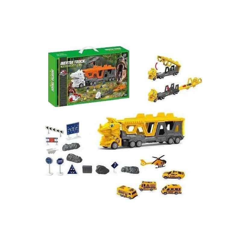 Παιδικό όχημα μεταφοράς αυτοκινήτων με υπέροχο σχεδιασμό Δεινόσαυρος που μετατρέπεται σε αυτοκινητόδρομο, πολλά αξεσουάρ και εξαιρετικά ανθεκτική κατασκευή, για ατελείωτο παιχνίδι!