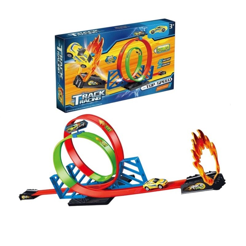 Αυτοκινητόδρομος πίστα με περιστροφή 360 μοιρών, εκτοξευτή και αξεσουάρ.