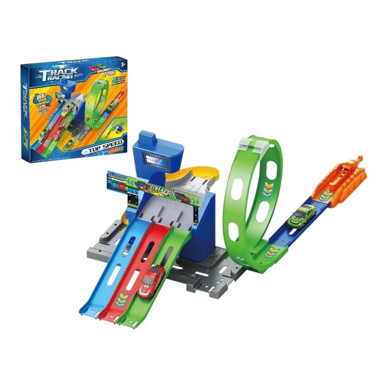 Αυτοκινητόδρομος πίστα με περιστροφή 360 μοιρών, εκτοξευτή και αξεσουάρ.
