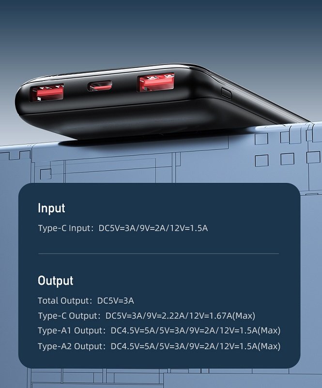 Powerbank Awei χωρητικότητας 10.000mah, με λειτουργία γρήγορης φόρτισης στα 22.5W και σε πρακτικό μέγεθος για εύκολη μεταφορά παντου.