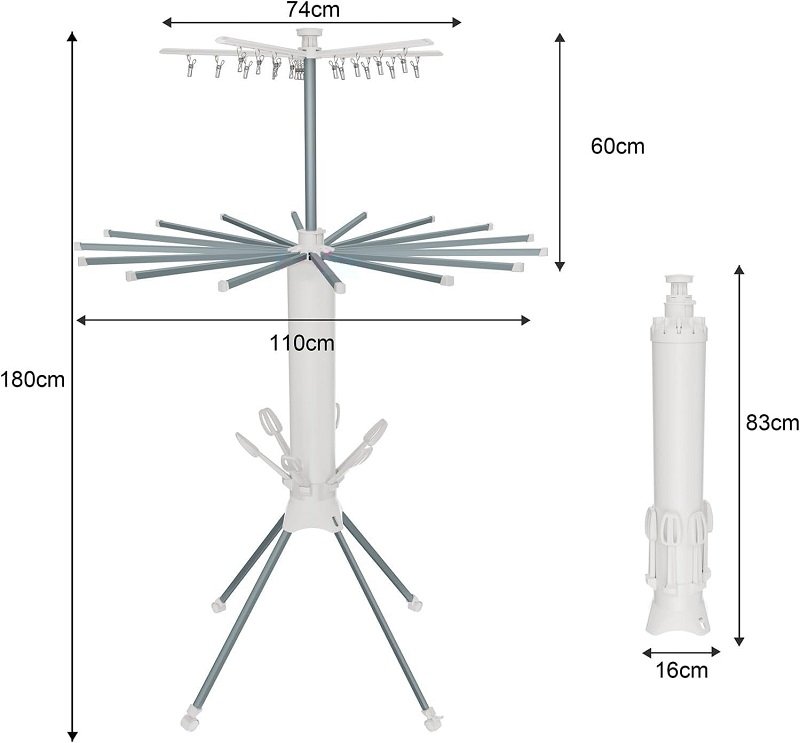 Πτυσσόμενη κρεμάστρα δαπέδου & απλώστρα ρούχων τροχήλατη – 12004-3 – 114289