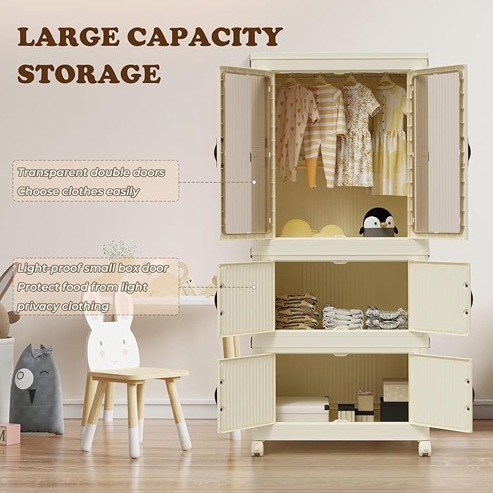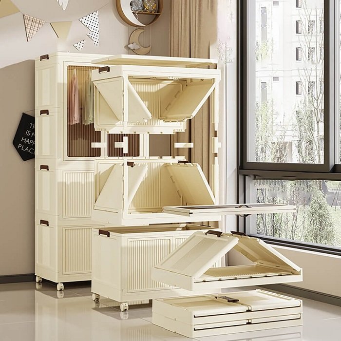 Πτυσσόμενη ντουλάπα αποθήκευσης 3 επιπέδων, πλαστική, με ρόδες για εύκολη μετακίνηση. Οι όροφοι αποσπώνται ώστε να μπορείτε να χρησιμοποιήσετε όσα μέρη χρειάζεστε, ενώ είναι πλήρως πτυσσόμενη για εύκολη αποθήκευση όταν δεν χρησιμοποιείται.