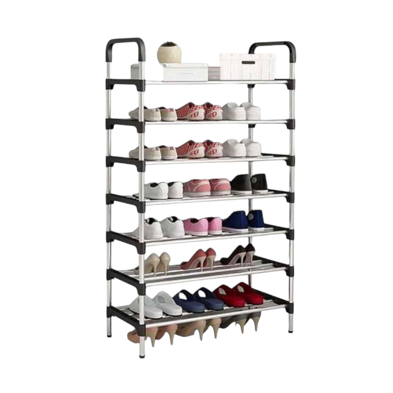 Ραφιέρα παπουτσιών 7 επιπέδων, με μεταλλικές βέργες και εύκολη συναρμολόγηση. Διαθέτει αντιολισθητικά πατάκια για την προστασία του πατώματός σας. Ιδανική για έπιπλο εισόδου ή οργάνωση αποθήκης. Διαστάσεις: 150 x 56 x 26cm