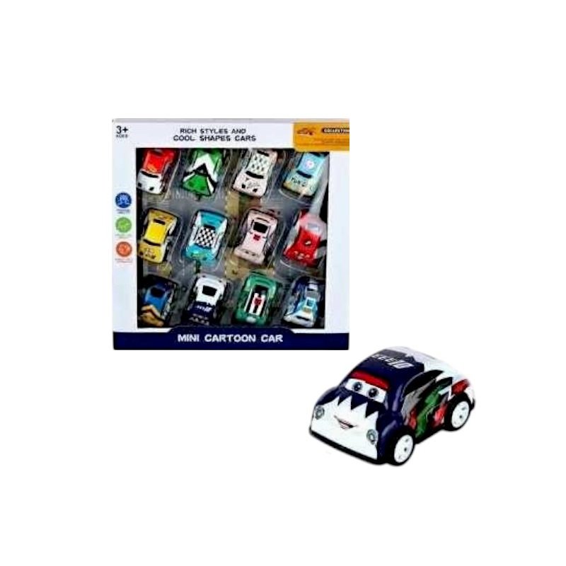 Μεταλλικά αυτοκινητάκια, σετ 12 τεμαχίων, σε διάφορα πολύχρωμα σχέδια και ποικιλία σχεδιασμού, με Pull Back.