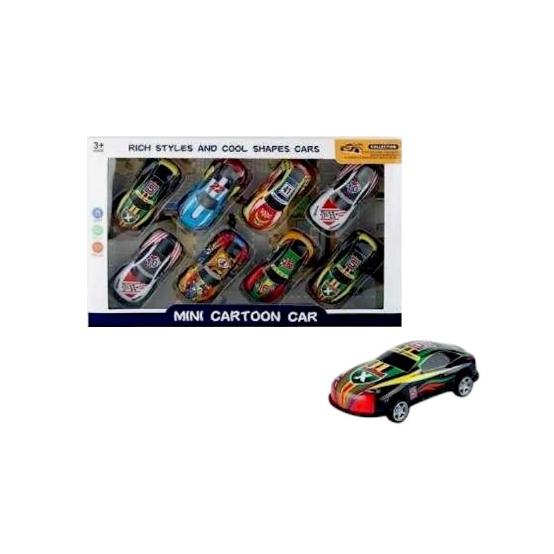 Μεταλλικά αυτοκινητάκια, σετ 8 τεμαχίων, σε διάφορα πολύχρωμα σχέδια και ποικιλία σχεδιασμού, με Pull Back.
