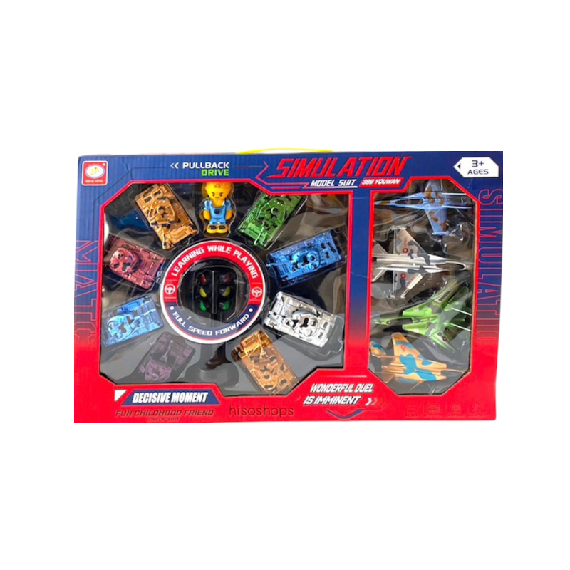 Πολεμικά οχήματα, τανκς και αεροπλάνα, σε διάφορα πολύχρωμα σχέδια και ποικιλία σχεδιασμού, με Pull Back.