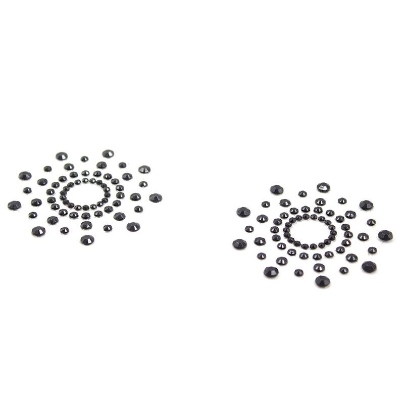 Self-adhesive snowflake-shaped teat cups in black, ideal to complete any look and surprise anyone in front of you.