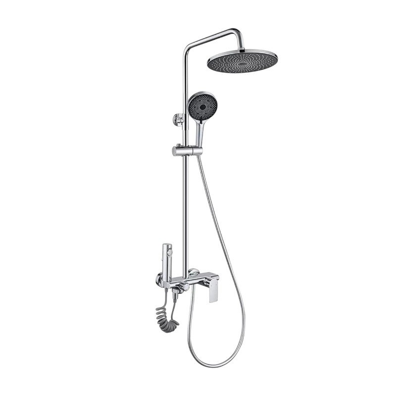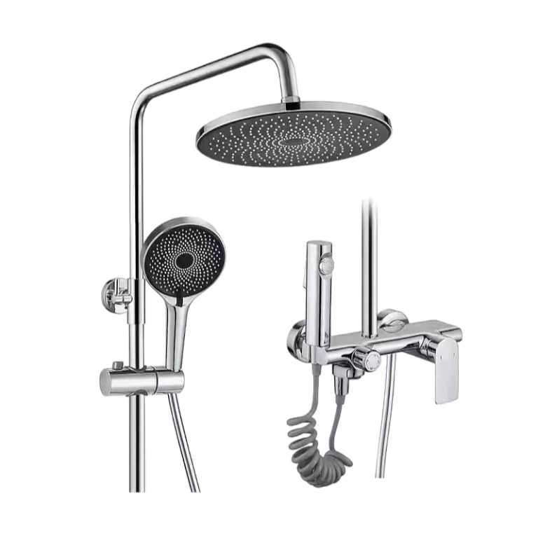 Στήλη ντουζιέρας 4 εξόδων, με μπαταρία αναμεικτική, με μοντέρνο σχεδιασμό που θα προσδώσει ιδιαίτερη αισθητική στο μπάνιο σας. Διαθέτει 4 εξόδους νερού για κάθε ανάγκη σας και στιβαρή ανθεκτική κατασκευή με χρωμέ φινίρισμα.