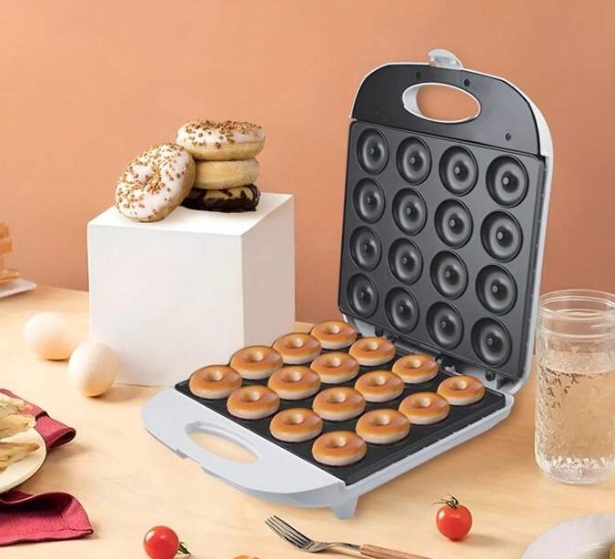 Συσκευή για λαχταριστά mini ντόνατς που θα λατρέψουν μικροί και μεγάλοι, με εναλλακτικό ψήσιμο, χωρίς το χρονοβόρο και ανθυγιεινό τηγάνισμα. Δημιουργήστε εύκολα και γρήγορα, έως και 16 donuts σε λίγα λεπτά, με τέλειο σχήμα, χάρη στις ειδικές αντικολλητικές πλάκες που θα ψήσουν άψογα τα donuts πάνω-κάτω, χωρίς την ανάγκη προσθήκης λαδιού και χωρίς κόπο στο καθάρισμα.