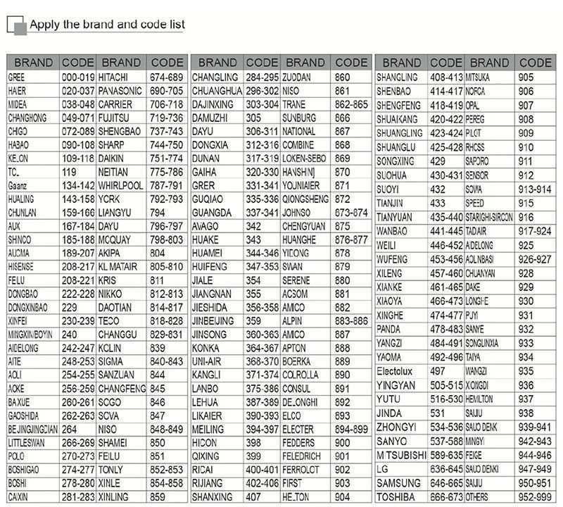 Διαθέτει αυτόματη αναζήτηση του κωδικού κλιματιστικού αλλά και χειροκίνητη εισαγωγή του κωδικού σε περίπτωση που το κλιματιστικό σας δεν βρίσκεται στην ενσωματωμένη λίστα.
