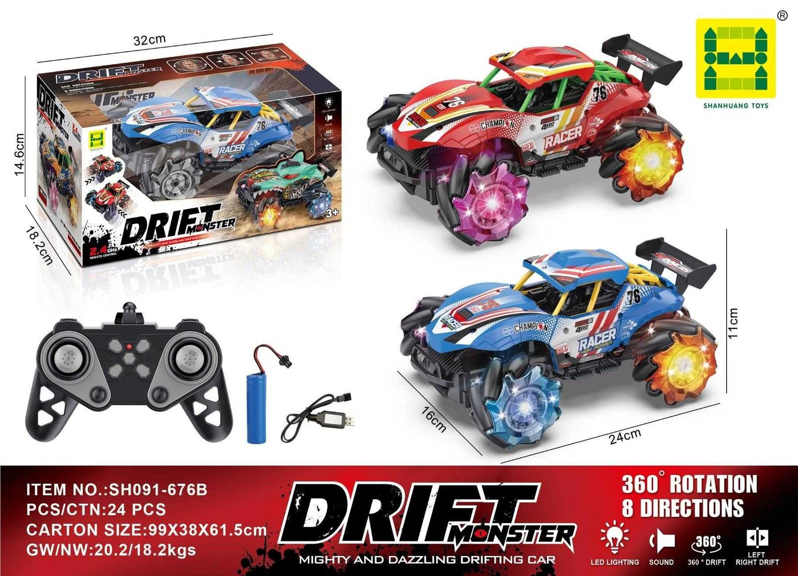 Τηλεκατευθυνόμενο αυτοκίνητο τζιπ Off Road, με φωτισμό, με μεγάλες ρόδες και λάστιχα, για να μην το σταματάει τίποτα, ακόμα και στους ανώμαλους δρόμους.