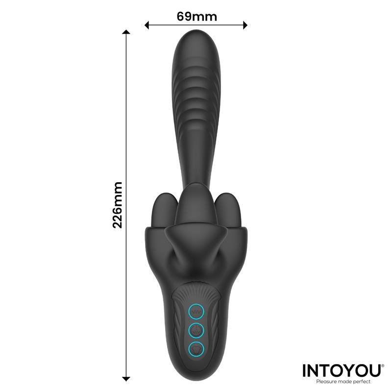 Discover a multi-sensory pleasure experience with Triton, the new vibrator with a tongue and triple motor from Intoyou, designed for those seeking more intense, dynamic, and customizable sensations.