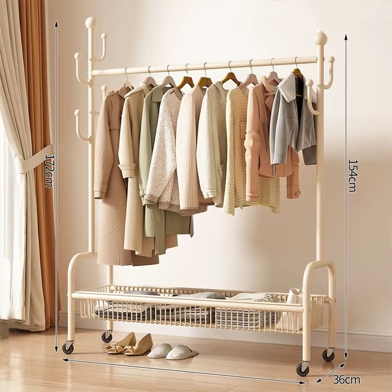 Τροχήλατη κρεμάστρα δαπέδου διπλή με ράφι παπουτσιών, ιδανική ως έπιπλο εισόδου ή για την οργάνωση των ρούχων στο δωμάτιό σας . Διαστάσεις: 172 x 120 x 36 cm.