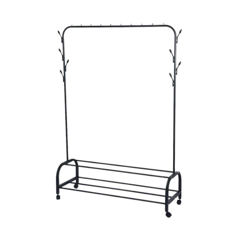 Τροχήλατη κρεμάστρα δαπέδου μεταλλική, με 2 ράφια παπουτσιών και πλαϊνές κρεμάστρες, ιδανική ως έπιπλο εισόδου ή για την οργάνωση των ρούχων στο δωμάτιό σας.