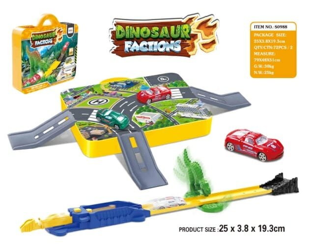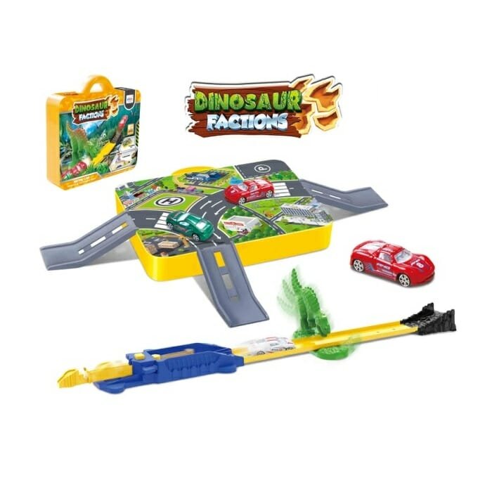 Αυτοκινητόδρομος-βαλιτσάκι με θέμα τους δεινόσαυρους, που στήνεται με μία κίνηση.