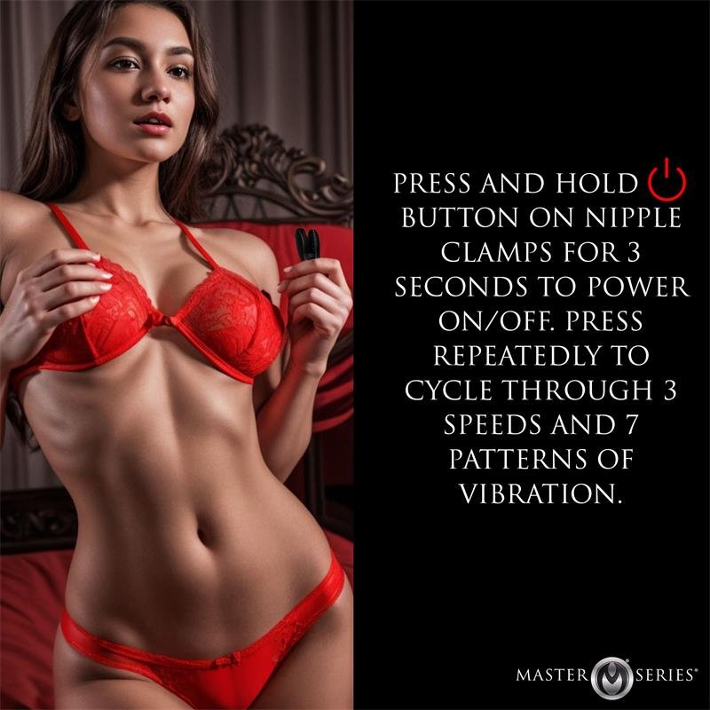Take your nipple stimulation to a whole new level with Vibrating Nipple Clamps. Explore endless possibilities with 3 speeds and 7 exciting vibration patterns that promise intense sensations. Place them anywhere on your body to explore your erogenous zones. Made from high-quality, body-safe silicone, these clamps offer a silky-smooth feel. With grippy bumps for a secure and gentle hold on your nipples, they’re perfect for those seeking extra stimulation. Conveniently recharge them with the stylish and practical Master Series case, which keeps your clamps clean and ready for your next adventure. Stored in such a small and compact case, they’re easy to carry, discreet, and recharge inside the case. Experience the ultimate in nipple play!