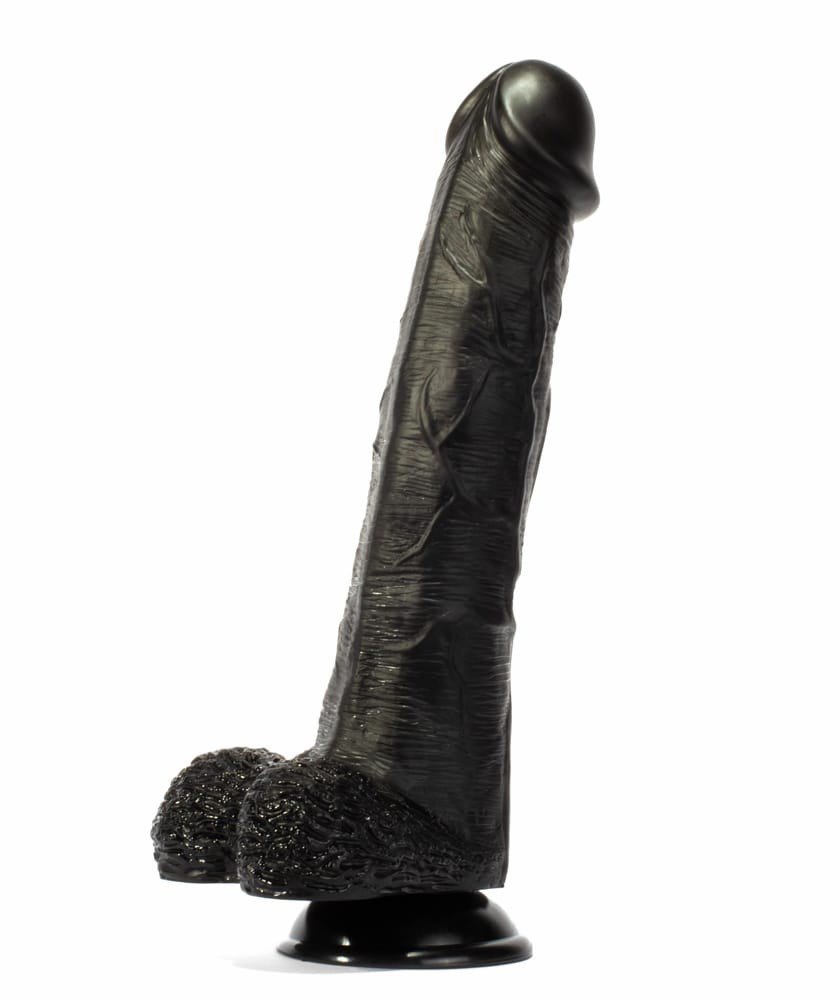 High-quality, flexible, penis-shaped dildo with a skin-like feel, made of a material similar to body tissue, without a motor, with a highly vascularised surface and with a testicle. Its suction cup can be attached to a flat surface.