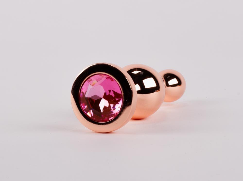 Sphincter dilating, relaxing device designed with 2 balls of different diameters. Unisex, recommended for both men and women. The shiny metal surface glides easily and allows a very comfortable penetration. The base has a diamond texture.
