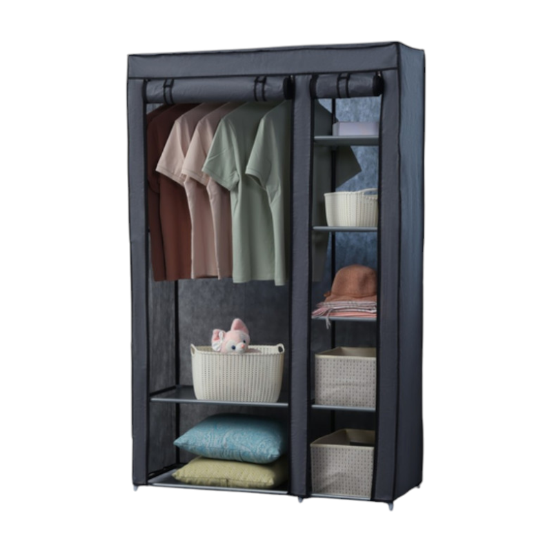 Υφασμάτινη ντουλάπα ρούχων με ράφια – 8890 – 521674 – Grey